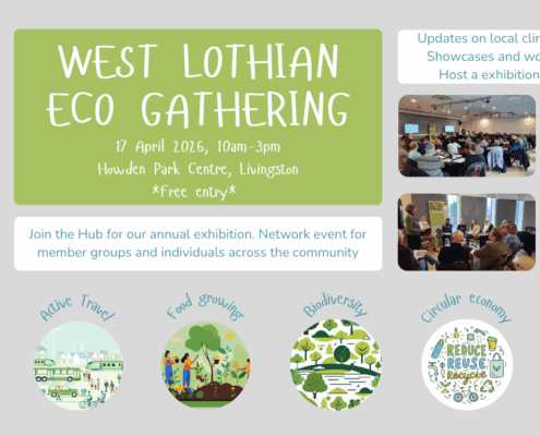 The aim of the hub is to support community led climate action in West Lothian in all the stages it takes to design, develop and deliver a project. We can support existing community groups or help communities to form new groups. Connecting communities through new and existing networks and signposting to further support as needed. Even if you are not developing a specific climate action project we can help you with climate ready policies for your organisations and how to embed climate action in your work.