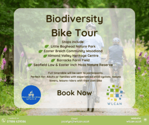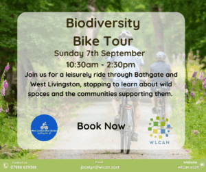 Join us and members from West Lothian Bike Library for a free leisurely ride through Bathgate and West Livingston, stopping to learn about wild spaces and the communities supporting them.